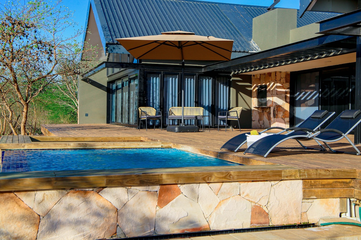 Perfect place to enjoy your peaceful stay, enjoy the sound of birds, breezing trees and river flow view. Indulge in natures best, with our outdoor bush bath tub and outdoor shower. Private pool, boma and braai area We have a fully equipped kitchen, offering self catering, with an option of private chef.