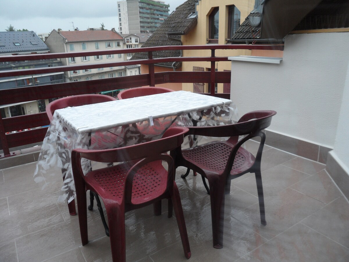 Dođite i uživajte u jedinstvenom iskustvu naše gradske planinske kuće u Annemasseu. Stan je na zadnjem spratu, pružajući vam neometan pogled na okolne planine. Nakon cjelodnevnog planinarenja, skijanja ili rada, opustite se pored kamina i opustite se u privatnoj hidromasažnoj kadi. Nalazi se pet minuta od Mont-Salvea, 20 minuta od Ženeve i 50 minuta od prvih skijališta.