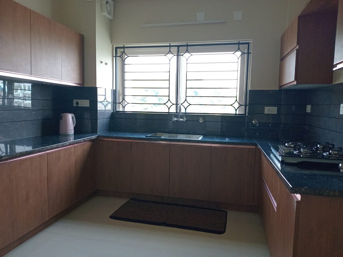 Uživajte u prostranom stanu s pogledom na rijeku od 1800 kvadratnih metara i punim pristupom svim modernim sadržajima. Nalazi se samo 2,3 km od željezničke stanice i autobuske stanice Aluva i u blizini najboljih restorana u gradu. Idealno za parove, porodice ili male grupe koje traže luksuz, udobnost i praktičnost. Napomena: Ovo je privatni, potpuno namješteni 3BHK stan. Ako želite da rezervišete samo 2 sobe, možete da ih zatražite i platite samo dvije. Treća soba će ostati zaključana, pružajući potpunu privatnost.