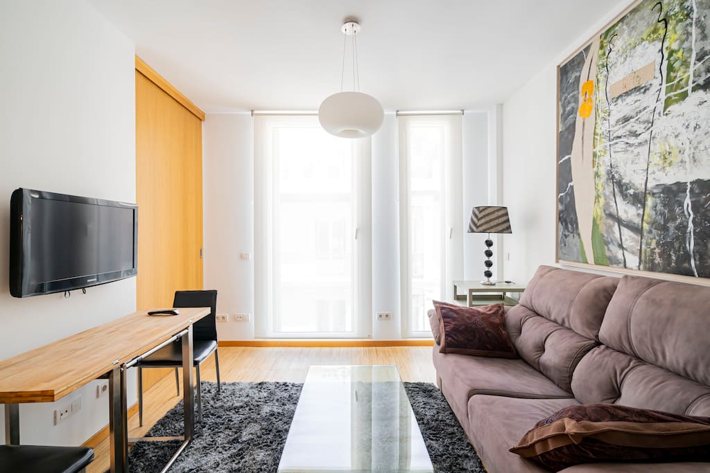 Veličanstven stan od 45 kvadratnih metara u srcu Madrida. Sa spektakularnim dizajnom i dekoracijom, prostranim prostorima i visokim plafonima, stan je opremljen svime što vam je potrebno za boravak u Madridu. Dnevni boravak ima tri balkona s pogledom na ulicu koji pružaju veliku osvijetljenost stanu. Spavaća soba ima sopstveno kupatilo i radni sto. Od stana možete prošetati do skoro svih legendarnih tačaka Madrida.