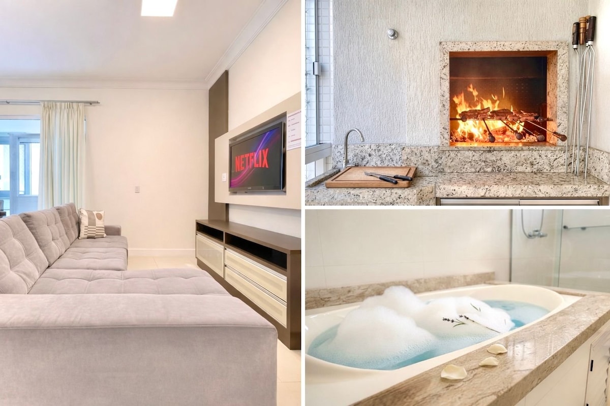 276 Half Beach Street. Sunčan i prozračan stan. Internet, Wi-Fi, TV samo sa satelitskom televizijom, bračni krevet (širine 150-179 cm), klima-uređaj u svim sobama. Posteljina i kupatilo su uključeni. 1 garažni prostor. Na najboljoj lokaciji Meia Praia itapema. 276. ulica u blizini Av. Nereu Ramos, u blizini plaže, metroa, Mek Donalda, prodavnica, barova i restorana. Beto Kareiro udaljen je 40 minuta. Premium Outlet i Fashion Outlet su udaljeni 20 minuta vožnje. Balneário Camboriú i Event Center 19 km