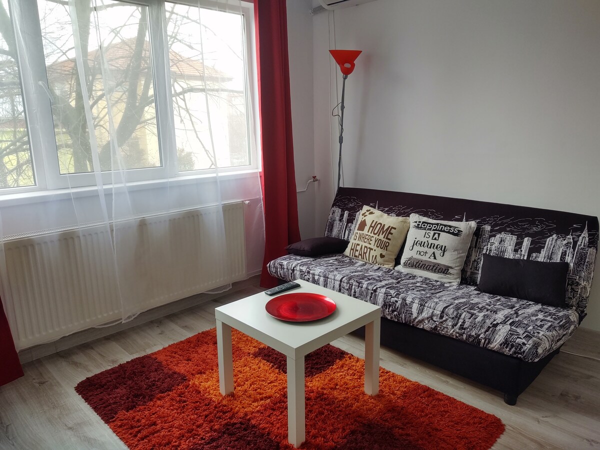 Dobro došli u svoj udoban smještaj! Opustite se u ovom mirnom, elegantnom studiju. Moj šarmantni apartman ima udoban krevet dimenzija 180x200 cm i savršeno je smešten na samo 400 metara od Iulius Town-a (5 minuta hoda) i 1 km od istorijskog i kulturnog centra grada. Julijus Taun je najprometnije mesto u gradu. Ovde možete naći bilo koji restoran koji želite, bilo koji kafić koji želite i bilo koju prodavnicu u kojoj želite da kupujete. To je zaista mesto u blizini gde želite da boravite kada dođete u Temišvar