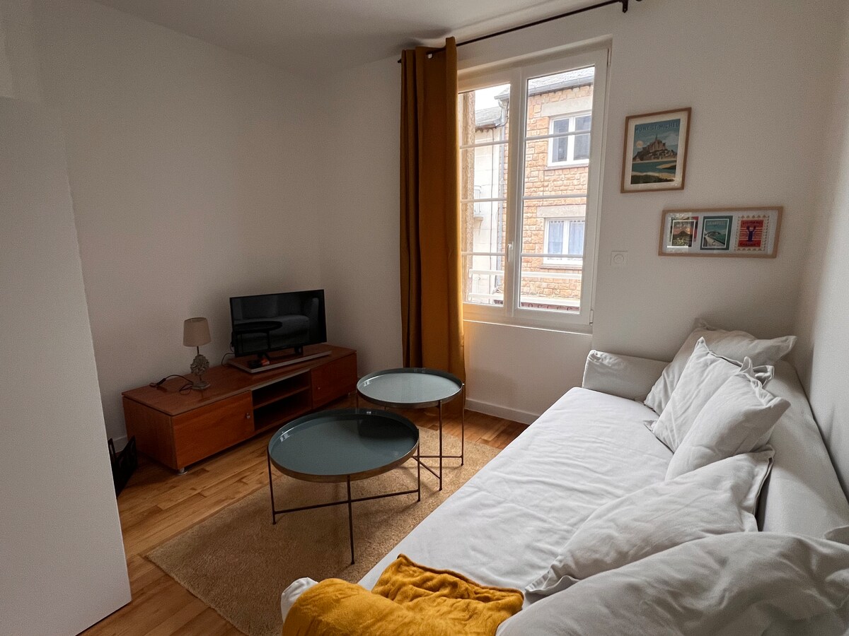 Uživajte u elegantnom i udobnom smještaju,renoviranom 2023. godine, koji se nalazi u zalivu Mon Sent Mišel . Stan u srcu istorijskog okruga Avranches u kojem su prodavnice i restorani dostupni pješke. Odličan smještaj za poslovna putovanja ili odmor za parove. Brzi pristup preko 4 trake do Mon Sent Mišela (20 minuta) i Sent Malo(45 minuta). Do Grenvila ima prelijepe plaže udaljene 15 minuta. Besplatan parking u blizini.