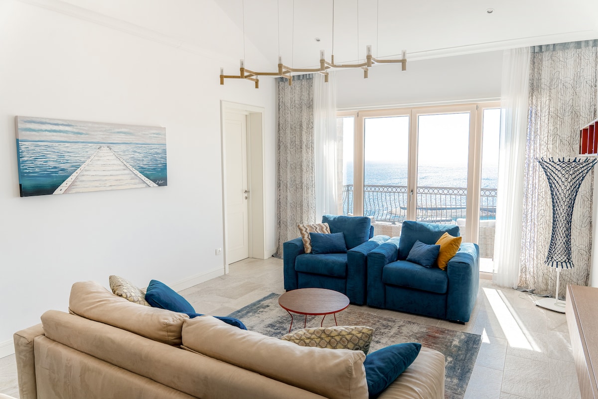 Dobro došli u moj prostrani penthaus koji se nalazi u vili Casa Bellavista. Pijte jutarnju kafu na privatnoj terasi i uživajte u pogledu. Unutra je sve potpuno opremljeno: moderna kuhinja, dva bračna kreveta, dva prostrana kupatila (jedno sa đakuzijem) i mini-bar. Nakon celodnevnog istraživanja, osvežite se u spoljnom bazenu, okruženom mediteranskim zelenilom. Bilo da boravite vikend ili mesec dana, ovo je vaše utočište. Savršeno za parove, male porodice itd.