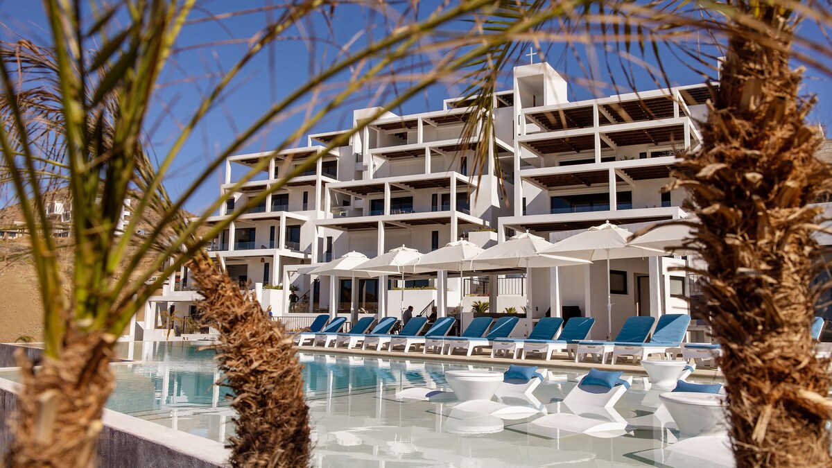 Potpuno novi stan sa direktnim pogledom na Cerritos surferski odmor. Lokacija je NESTVARNA. Prošetajte do toliko fantastičnih restorana. Uživajte u privatnoj hidromasažnoj kadi. Opustite se na udobnom kauču nakon dugog dana na plaži. Ostanite pored idiličnog bazena. Uređen jednostavnim, ali savremenim Baja stilom. Izaberite 2 bračna kreveta (180x200) ili 1 bračni krevet (180x200) i 2 bliz Obe spavaće sobe imaju kupatila sa zasebnim kupatilima. Dodatni kauč na razvlačenje za dodatni prostor za spavanje! Jedinica na 2. spratu, sa liftom! Savršen odmor!!!!!!
