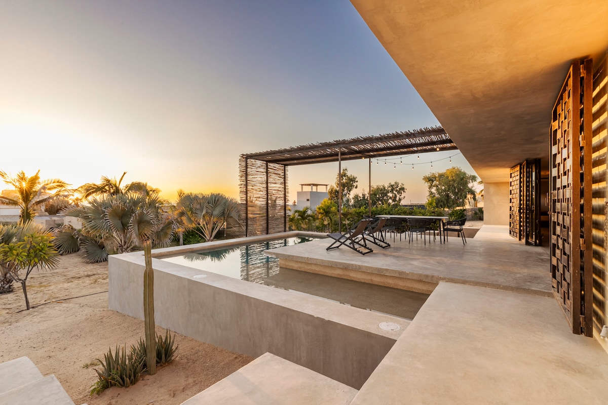Casita del Sol je okružena planinama, pustinjom Baja i pogledom na Tihi okean. Dva privatna sprata čekaju na vaše uživanje, zvuk surfovanja će vas uspavati svake noći. Casita je romantično skrovište sa kuhinjom i kupatilom. Trpezarijski sto sa svijećama gleda na more. Raskošan prostor za opuštanje na otvorenom savršen za spavanje, čitanje, rad ili opuštanje. Čeka vas spiralno stepenište na vašem privatnom krovu na svom privatnom krovu. Zalazak sunca je spektakularan!