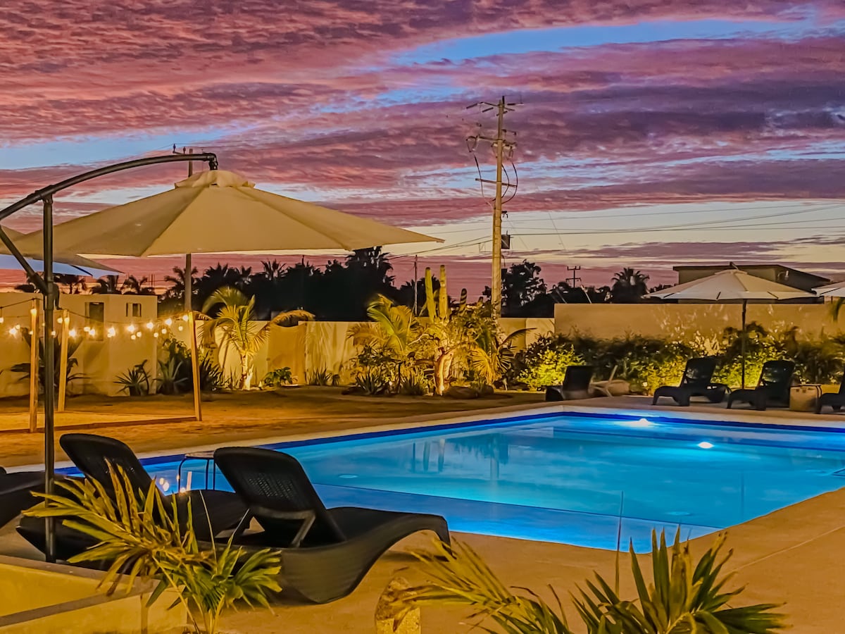 Luxury Villa Retreat | Wellness, Staff & Orchard Escape to a lush 2BR villa + casita in Las Tunas, Todos Santos, close to top restaurants and food shops. – Wellness: Sauna, cold plunge, outdoor showers & sunbeds – Comfort: 2 king bedrooms + casita w/ queen bed, and beautiful bathrooms – Staffed: Cook & housekeeping (Mon–Fri, 8 AM–1 PM) – Extras: Sonos, projector, telescope, orchard, Le Creuset, Global knives, workspace, Starlink, BBQ & grill Experience nature, calm & comfort in style.