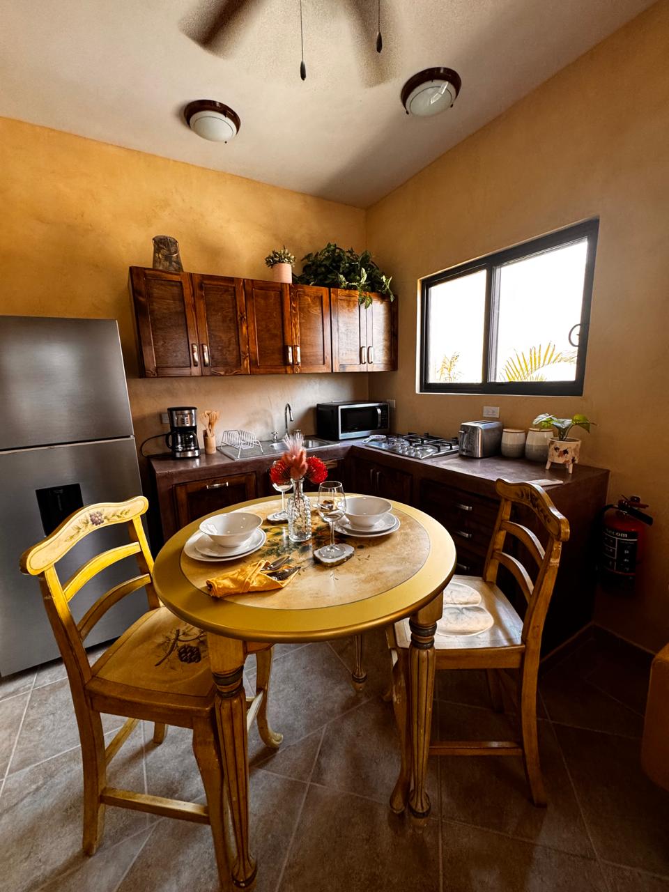 Novi stan!, 1 blok od centra grada, unutrašnje dvorište sa visećom mrežom za uživanje u čitanju popodneva ili čak spavanju u njemu. Idete na drugi sprat i imaćete divan pogled na voćnjake, crkvu Nuestra Senora del Pilar, bićete u srcu Todosa Santosa!. Idealno za šetnju do galerija, restorana, barova, kafića, istorijskih i kulturnih znamenitosti koje se nalaze na glavnom trgu ovog Pueblo Magico (Magični grad), plaža je udaljena samo 2 km.