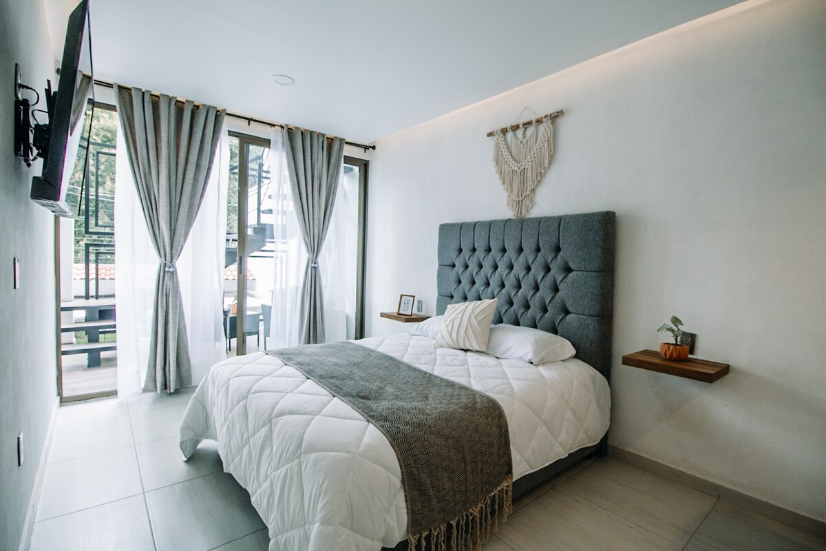 Sa parkingom i 24-satnim nadzorom. 3 minuta od dječije bolnice 3 minuta od Medicinskog fakulteta UAEMex 8 minuta do centra Toluke 5 minuta od majčinske bolnice 8 minuta do Metepeka 15 minuta od aerodroma Aeropueto de Toluca 10 minuta od stadiona Nemesio 10 Imamo više stanova sa bračnim krevetom za jednu osobu i kaučem na razvlačenje po pristupačnijim cijenama: www.airbnb.mx/h/7casapame7 www.airbnb.mx/h/8casapame8 www.airbnb.mx/h/9casapame9