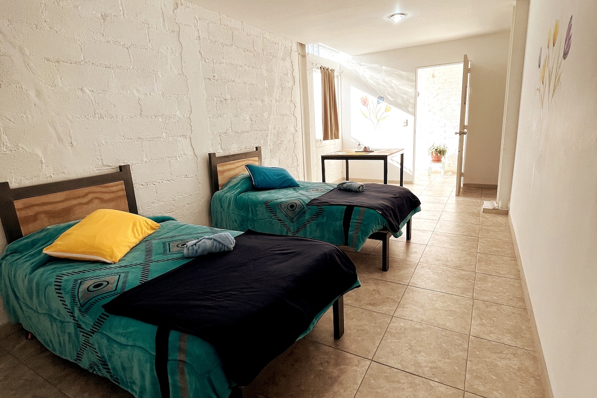 Disfruta de la calidez de este alojamiento tranquilo y céntrico, con acceso rápido a las avenidas principales, afuera en la calle encontrarás una Plaza comercial con Banorte, Starbucks farmacia Guadalajara, Subway, restaurantes, hair Studio, business center. El alojamiento cuenta con estacionamiento propio seguro, si deseas conocer el centro el centro de Metepec, puedes hacerlo caminando la zona es muy tranquila y estamos a 10 min caminando.