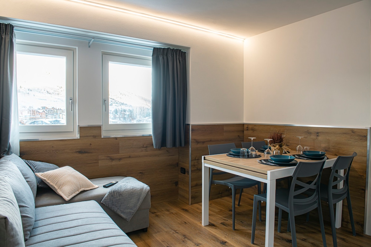 Prestižni objekat: idealno rješenje za nezaboravan porodični odmor. Ovaj veličanstveni smještaj, pažljivo opremljen sa pažnjom na svaki detalj, besprekorno kombinuje moderan stil sa alpskom elegancijom. Toplina drveta se savršeno uklapa sa hladnim tonovima čelika i nijansama sive boje, stvarajući prijatnu atmosferu bogatu stilom i ukusom. Stan ima prostrani dnevni boravak sa kaminom, Smart TV i kauč na razvlačenje koji može da primi dva gosta.
