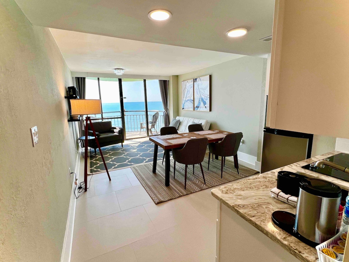 Priuštite sebi opuštajući, podmlađujući boravak u ovom potpuno renoviranom stanu na obali okeana. Uživajte u modernim završnim obradama, uključujući kvarcne radne površine, ormariće, uređaje od nerđajućeg čelika, renovirano kupatilo i stilski nameštaj. Ova jedinica na 9. spratu nudi predivne izlaske sunca, unutrašnje i spoljašnje bazene sa grejanjem i đakuzije, kao i veliki travnjak na obali okeana sa mnogo mesta za sedenje. Pešačite do restorana, kafića, barova i popularnih atrakcija u MB, uključujući šetalište, Sky Wheel, Kongresni centar i CCMF.