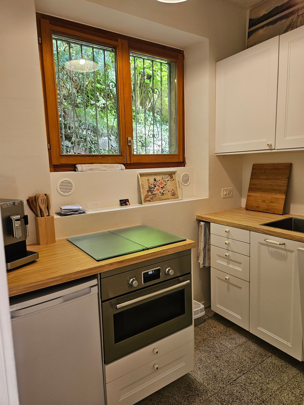 Prostrana i elegantno namještena seoska kućica za najviše 4 osobe na dva sprata sa oko 100 m2 stambenog prostora. 2 balkona + terasa sa dodatnih 30 kvadratnih metara pozivaju vas da se sunčate, opustite i uživate. Sve sobe su individualno dizajnirane i imaju pogled na jezero Lugano i planine koji oduzima dah. Privatnost je ovde veoma važna, jer kao poslednja kuća na ulici i koja se nalazi direktno na šumi, nesmetani ste - a ipak samo 10 minuta vožnje automobilom od centra Lugana.