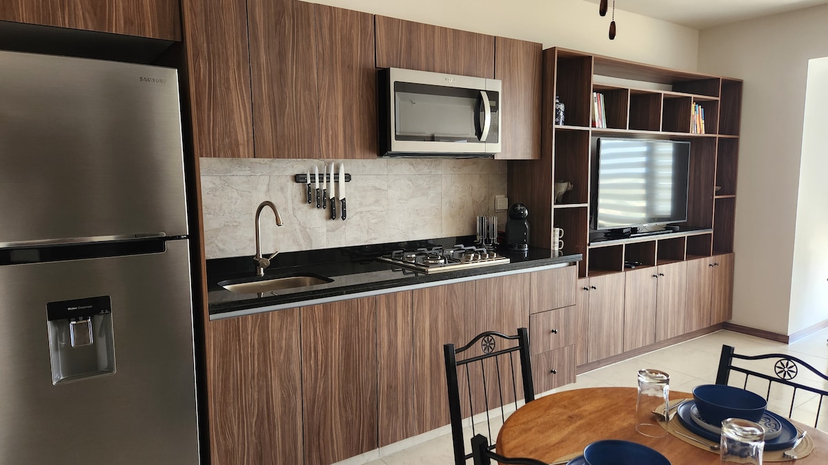 Excelente departamento completamente amueblado y equipado frente al TSM y a un lado del Play Pádel, y a 3 minutos de HEB y Costco, cerca de escuelas y universidades así como centros comerciales como galerias a 10 minutos y almanara