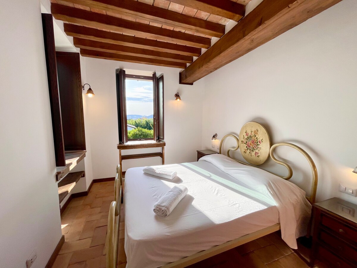 Ogroman i šarmantan stan na posljednjem spratu u toskanskoj vili sa pogledom koji oduzima dah! Posjetite Montepulćano, Piencu, Sijenu, istražite seosku stranu, vinograde i termalne izvore, planinarenje ili e-biciklizam, šetnju ili vožnju! Dva prostrana apartmana sa krevetima vrhunskog kvaliteta i kupatilom sa spojenim kupatilom. Dnevna soba sa zidovima na prozorima, udobni kauči, profesionalna kuhinja za sopstvenu upotrebu. Možemo da organizujemo posetu vinariji i degustaciju, časove kuvanja i privatne večere. NOVA hidromasažna kada okrenuta prema zelenom vrhu brda! Doživite Toskanu kao mještanin, u društvu lokalnog domaćina!