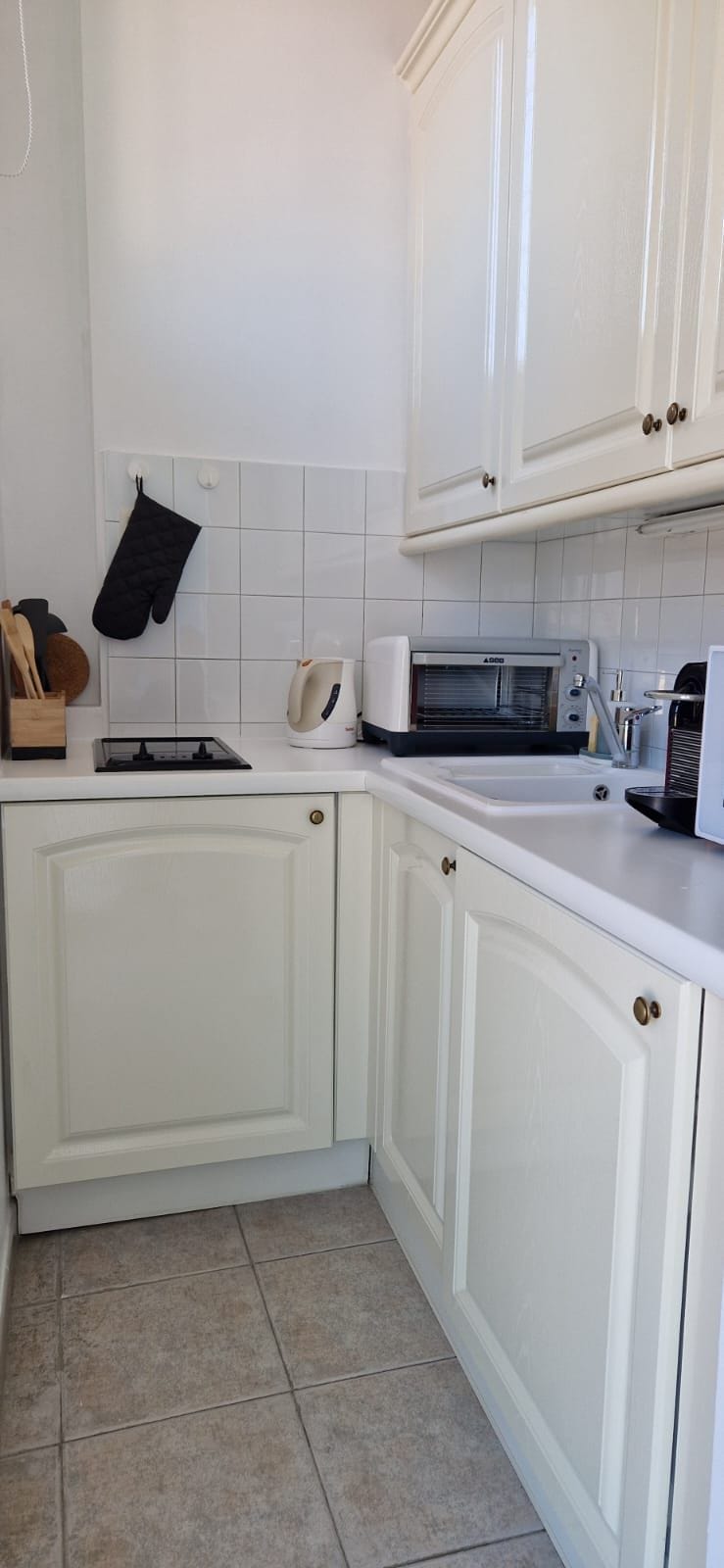 Cuisine ouverte sur coin repas comprenant : micro-onde, lave linge, congélateur bac, frigidaire, machine à café nespresso, bouilloire, grille pain, plaque de cuisson. Patio: 1 table et 4 fauteuils de jardin, barbecue. 2 bains de soleil dans le jardin privatif. Salon : un canapé deux places, deux fauteuils assortis, meuble bar, télévision. Couchages 1 canapé 140 Chambre : 1 lit de 140, terrasse avec table et 2 fauteuils + jardin privatif. Petit animal accepté sur demande. Lit bébé, chaise haute.