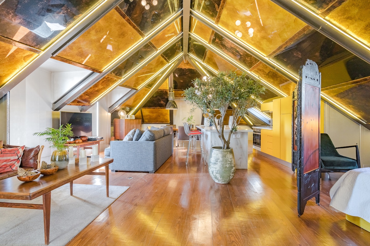Sa prelepim pogledom na reku Taho, ovaj prostor se ističe svojim plafonima od spaljenog drveta u zlatnim tonovima, koji stvaraju jedinstvenu i sofisticiranu atmosferu, kao i balkonom sa direktnim pogledom na reku. Ovaj moderni potkrovlje može da ugosti do 4 osobe u svojih 94 m². Smešten na četvrtom spratu zgrade sa liftom, nalazi se u srcu tipičnog kvarta Alfama. Možete da pešačite do svih glavnih tačaka grada, što ovu lokaciju čini privilegovanom za pristup Lisabonu.