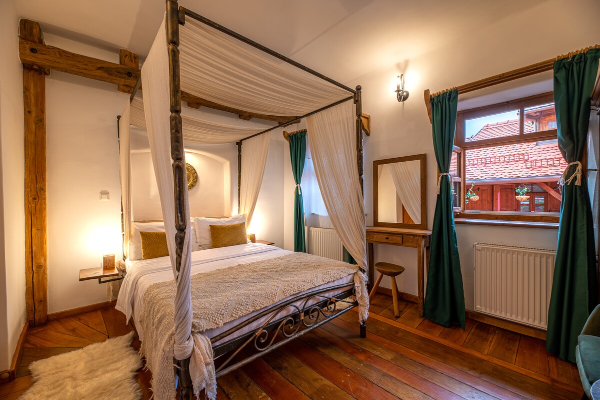 Centralna lokacija u tvrđavi Sighisoara, dvije kuće udaljene od mjesta gdje je rođen Vlad The Impaler aka Dracula, s pogledom na trg uporišta, toranj sa satom i manastirsku crkvu. Nudimo 4 sobe (2, 7, 8 i 9) na gornjem spratu sa izloženim drvenim gredama, drvenim podovima i prostorom za sjedenje izvan 3 sobe za čitanje ili rad, ekskluzivno za goste Airb&b-a .