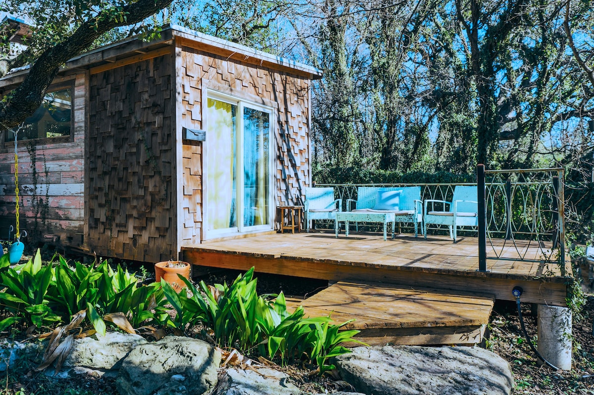 Trijem *Udobna brvnara* lagana šetnja do jezera Travis