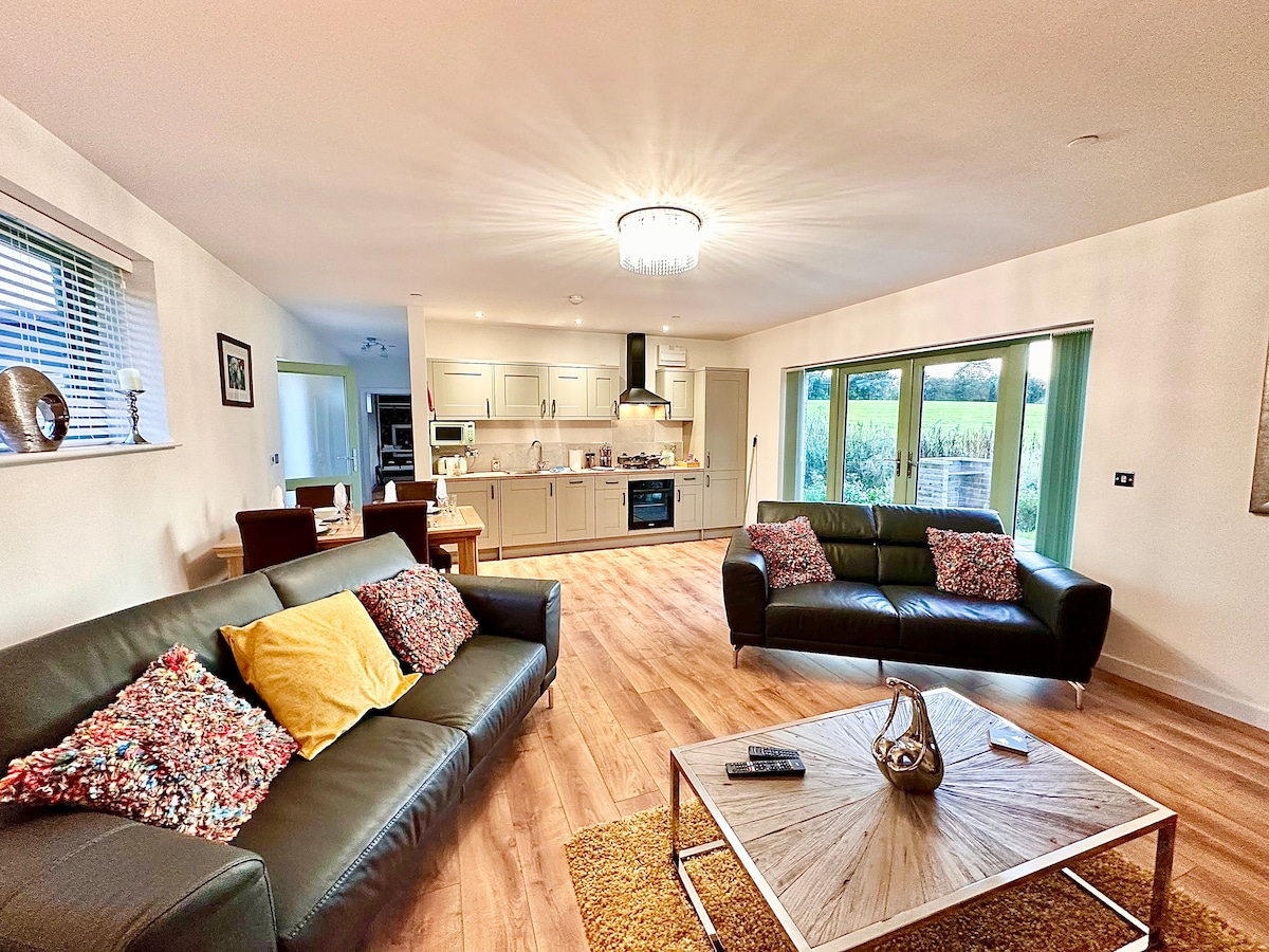 A very spacious open plan, bespoke lodge 2 large luxury suites with own shower rooms. Fantastic views from bedrooms and lounge, parking, recently completed and built with love from the ground up in 2023. With a touch of luxury throughout. Private and secluded but close to some of Wales’ most gorgeous towns and villages. A short drive to some some of best, award winning pubs with amazing restaurants. Located on a modern working, hobby farm.