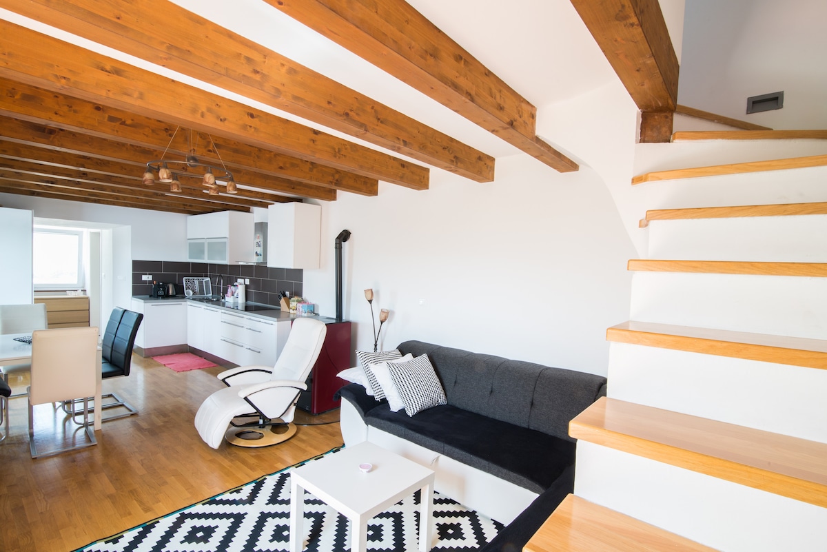 U centru sela Šmarje pri Koper, samo jedinstveni dupleks stan u renoviranoj staroj istarskoj kući, koja pripada vlasniku poznate vinarije „Santomas”. Uz pažljivo uređene sadržaje, uživaćete u svim udobnostima doma. Prostor za spavanje se nalazi na gornjem spratu stana i u kuhinji u prizemlju sa toaletima. Terasa na slikama je za predmetni stan i sjenovita je u svim delovima dana. Dozvolite mi da napomenem da će vas blago crkveno zvono podsjetiti na tačno vrijeme.