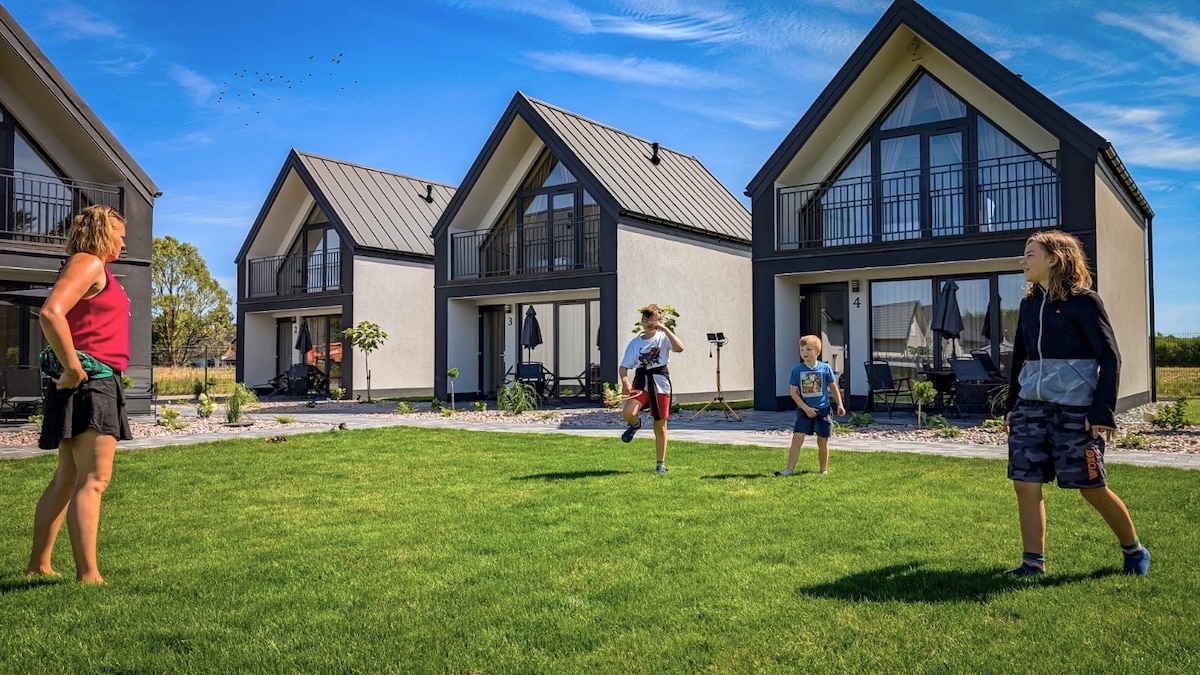 Pozivamo vas da iznajmite 3 seoske kuće sa 6 kreveta, koje se nalaze na jezeru, samo nekoliko minuta hoda od plaže. Mir, tišina, blizina prirode i prelijepi pogledi garantuju odličan odmor. Svaka seoska kuća je opremljena kaminom, TV-om od 55inča, Wi-Fi mrežom, mašinom za pranje sudova, usisivačem, frižiderom, rernom, roštiljem, a objekat ima kajake, bicikle i skutere, mašinu za pranje veša i električnu mašinu za sušenje veša. Odlični uslovi za ribolov i opuštanje na jezeru. Savršeno mjesto za odmor s porodicom ili prijateljima!