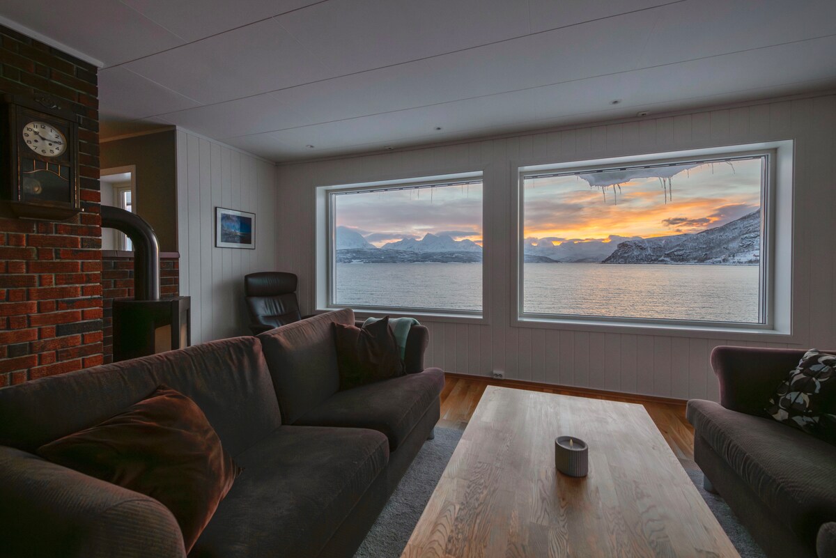 Zdravo :) Imam stan sa nevjerovatnim pogledom koji vam je na raspolaganju. Tokom boravka imaćete spavaću sobu, dnevnu sobu, kupatilo i kuhinju za sebe😄 Područje je savršeno za polarnu svetlost, skijanje, sankanje sa psima, farmu irvasa i zimski ribolov. U dnevnom boravku možete samo da sačekate Auroru 💚😊 Leti možete da uživate u pecanju i šetnji plažom. Kuća se nalazi pored glavnog puta E8, lako je putovati u drugi grad, pristup je lak, a autobuska stanica je takođe odmah ispred.