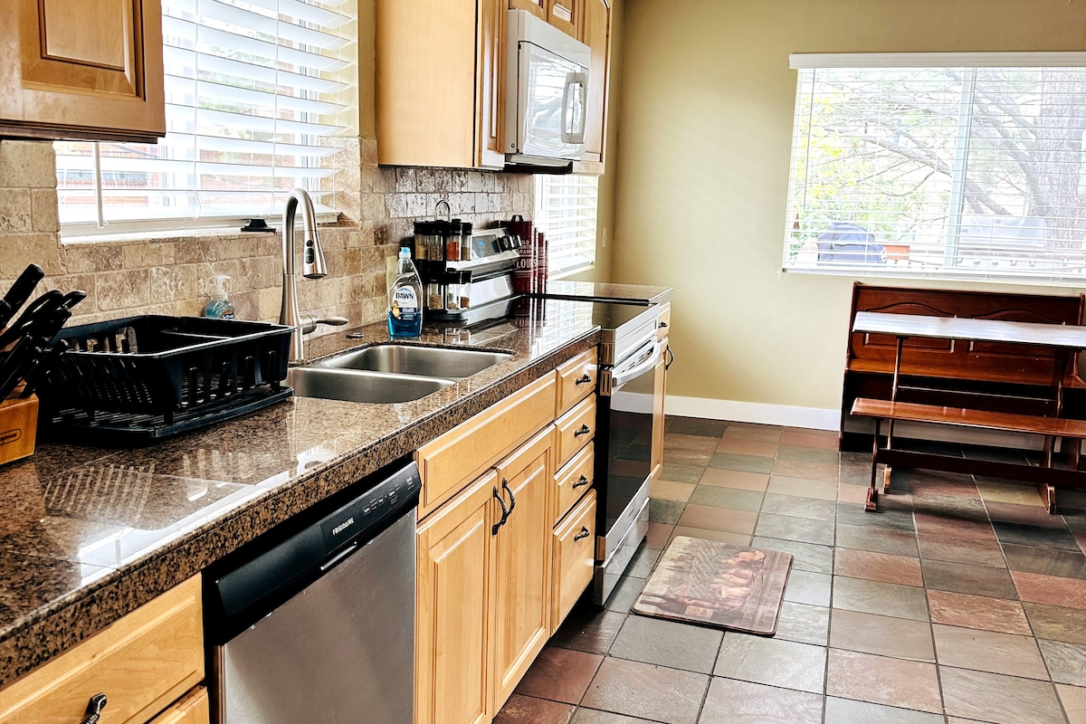 Izgrađena 2022. godine, ova moderna i prostrana kuća je savršeno mesto da nazovete domom za sve vaše avanture! Sve u domu je potpuno novo i pažljivo dizajnirano da obezbedi miran boravak. U centru ove prostrane kuće nalazi se dnevna soba i kuhinja - savršen prostor za porodice i grupe da provode vreme zajedno. 4 spavaće sobe i 2 kupatila sa velikom kadom + 65-inčni Smart TV + ormar za društvene igre + kancelarijski prostor sa štampačem Psi su dobrodošli @ 50 USD po putovanju