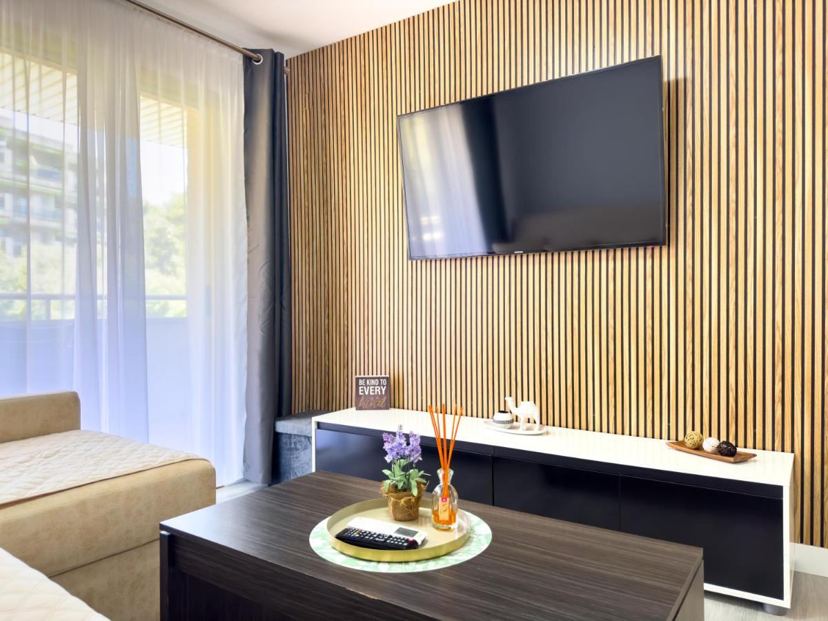 Renoviran stan, potpuno opremljen svime što vam je potrebno za uživanje u odmoru kao da ste kod kuće. Predivna terasa opremljena stolom, stolicama i foteljama. Bazen za odrasle, bazen i igre za decu i solarijum. Full HD TV sa Chromecast-om gde možete da otvorite Netflix, Prime Video i YouTube nalog ili da povežete konzolu za video igre. Dostupan je besplatan Wi-Fi. Važno: Boravišna taksa EUR2 po gostu po danu; za prvih 7 noćenja.