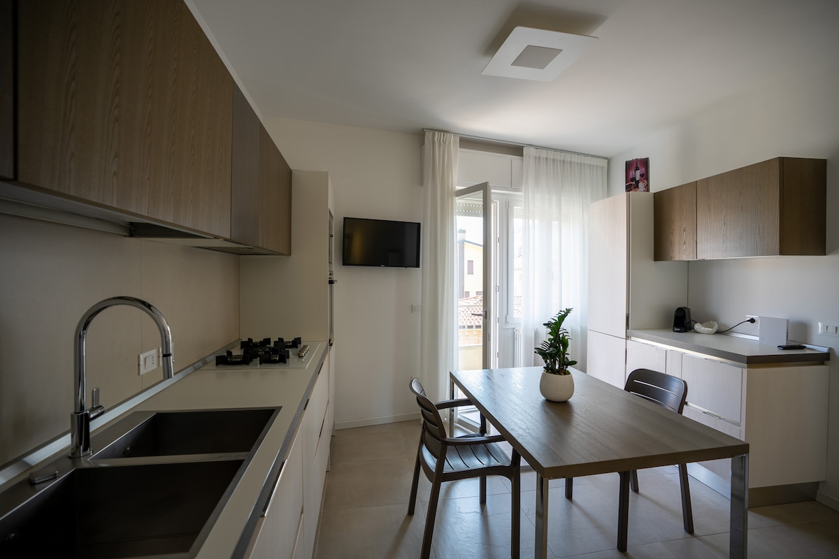 Nekoliko koraka od srca Jesola Lida, Casa Miriam vas dočekuje u modernim, svijetlim i izuzetno funkcionalnim stanovima. Svaki smještaj može da primi do 5 osoba i opremljen je svime što vam je potrebno da biste se osjećali kao kod kuće: opremljenom kuhinjom, klima-uređajem, Wi-Fi mrežom, TV-om, parking mjestom, prostorom za plažu i privatnom terasom. Savršeno za porodice i parove. Mali kućni ljubimci su dobrodošli, uz prethodnu najavu. Usluge: besplatan zajednički lift, mašina za pranje i sušenje veša.