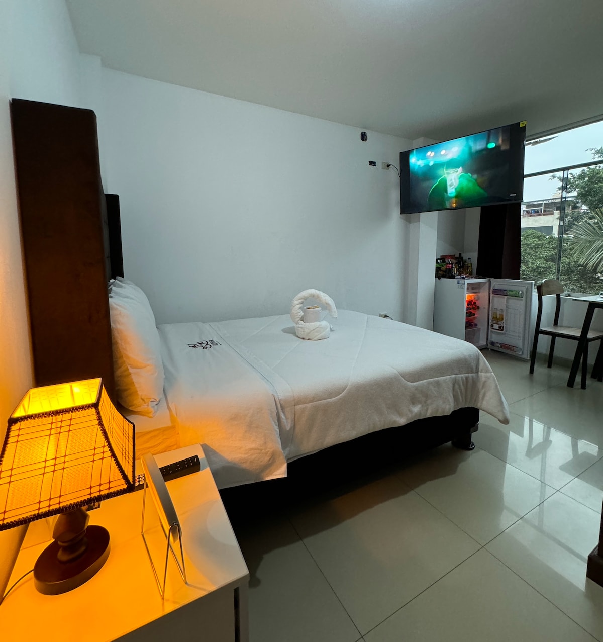 Monoambiente cómodo y seguro cerca al Óvalo Papal. Equipado con una cama de dos plazas y dos camas individuales, ideal para hasta cuatro personas. Cuenta con TV de 55 pulgadas con acceso a plataformas de streaming y WiFi de alta velocidad. Ubicado dentro de un condominio privado con vigilancia permanente y videovigilancia. Excelente ubicación con acceso rápido a transporte, comercios y puntos de interés.