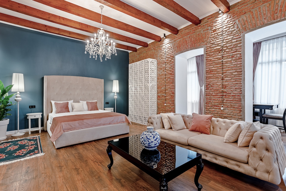 This is a comfortable renovated apartment with exposed brick that has a true Tbilisi feeling. This studio has a transparent bathroom with modern bathtub, king size bed, Chesterfield sofa and etc. The Space (78 sq.m) fits 2 & is located on Old Tbilisi district, on parallel street of main avenue of Georgia Shota Rustaveli Ave. High speed WIFI Internet & IPTV is provided free of charge. Apartment is also well located for transport Metro Freedom Square & Rustaveli stations are walk distance.