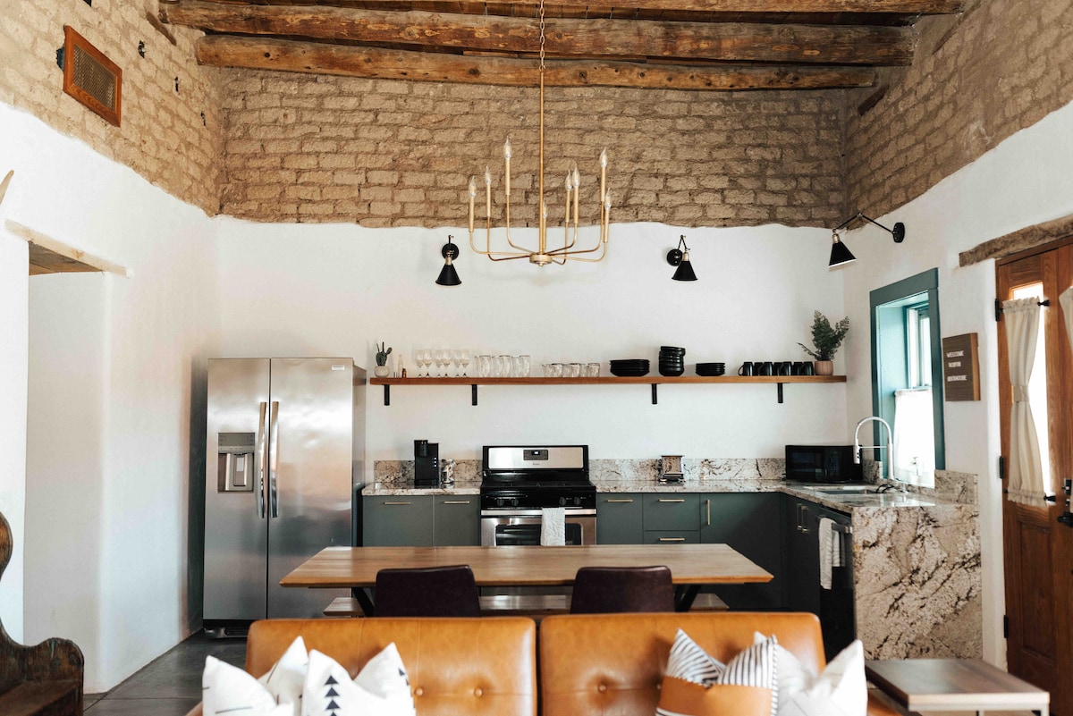 Cimarrones is an historic property located in the heart of Tucson's charming Barrio Viejo. Completely renovated in 2021, the building is now a duplex, with Cimarrones fronting the picturesque street. While the charm of the historic elements - the thick adobe walls, high ceilings with wood vigas, brick paver floors - has been preserved, a selective choice of luxury contemporary conveniences, fixtures and finishes will make your stay supremely comfortable. Arizona TPT License # 21469803