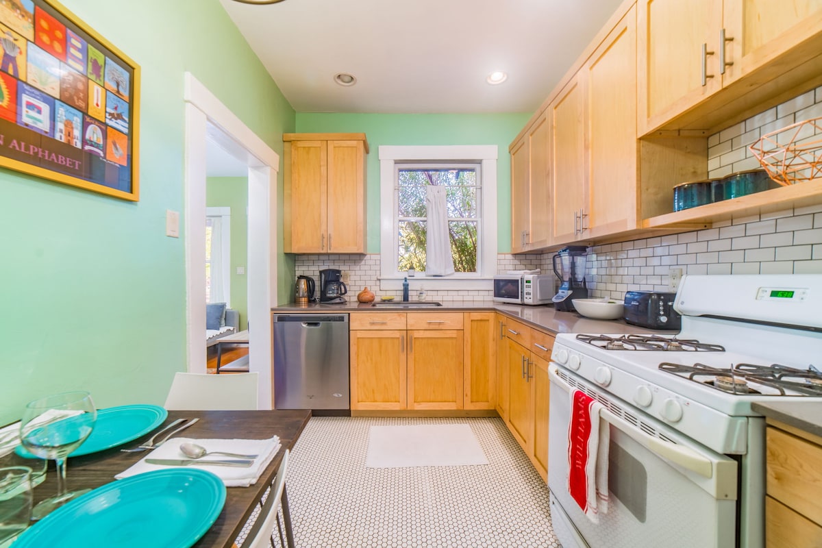 Immaculate, adorable, completely renovated 1916 duplex with new stylish furnishings and lots of cute comforts. It has all the amenities you could need, all new kitchen, original claw foot bathtub, and comfortable sleeping arrangements. One block off bustling 4th Avenue and a 10 minute walk or short street car ride to the U of A or downtown Tucson. Best location in Tucson. Attractive pricing. Consistently receives rave reviews.