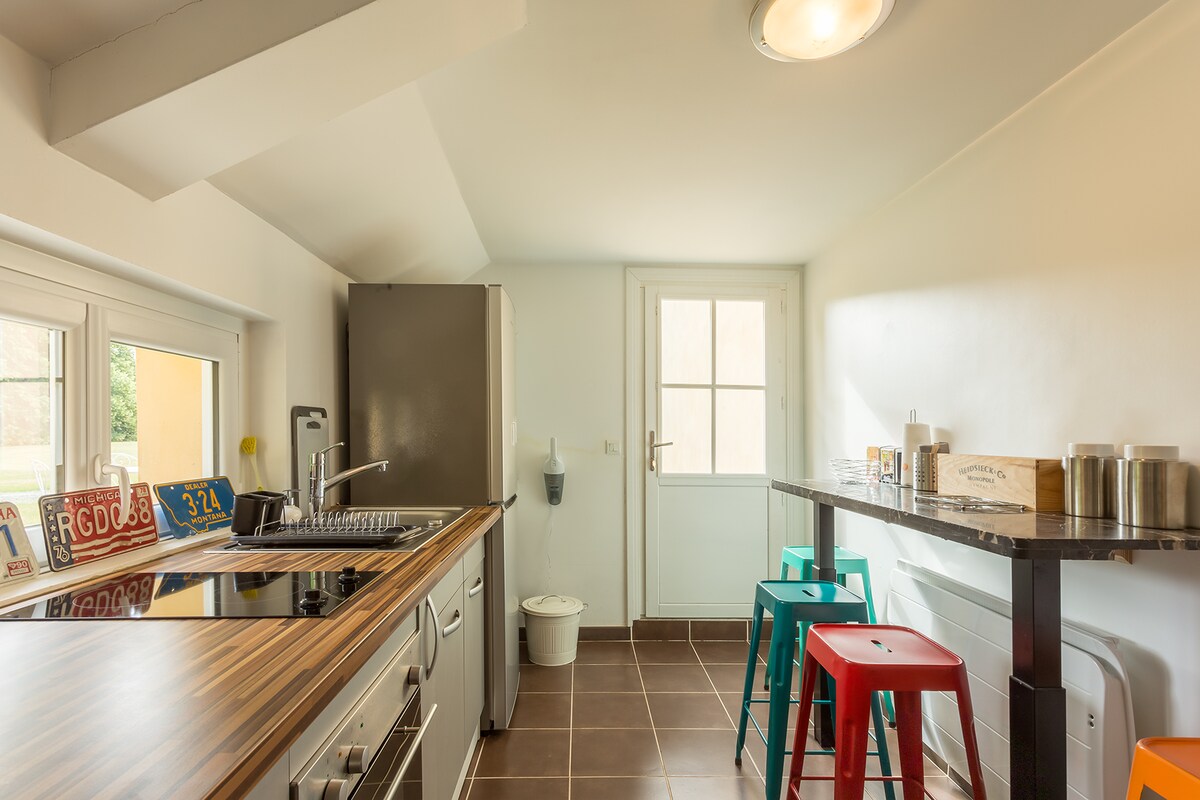 Lijepa kuća od pola drveta, renovirana od dna do tavana 2010. godine sa svim udobnostima, ali je zadržala svu svoju dušu. Mjesto gdje se svi osjećaju dobro, sa danima na suncu u velikoj bašti okrenutoj prema jugu ili u blizini velikog kamina zimi. 2 udobne spavaće sobe na 1. spratu (1 sa bračnim krevetom i 1 do 2 kreveta za jednu osobu), a u prizemlju, nakon velikog dnevnog boravka/trpezarije od 50 m2, mali radni sto sa 1 krevetom za jednu osobu i velika kuhinja opremljena svjetlom. Uskoro se vidimo