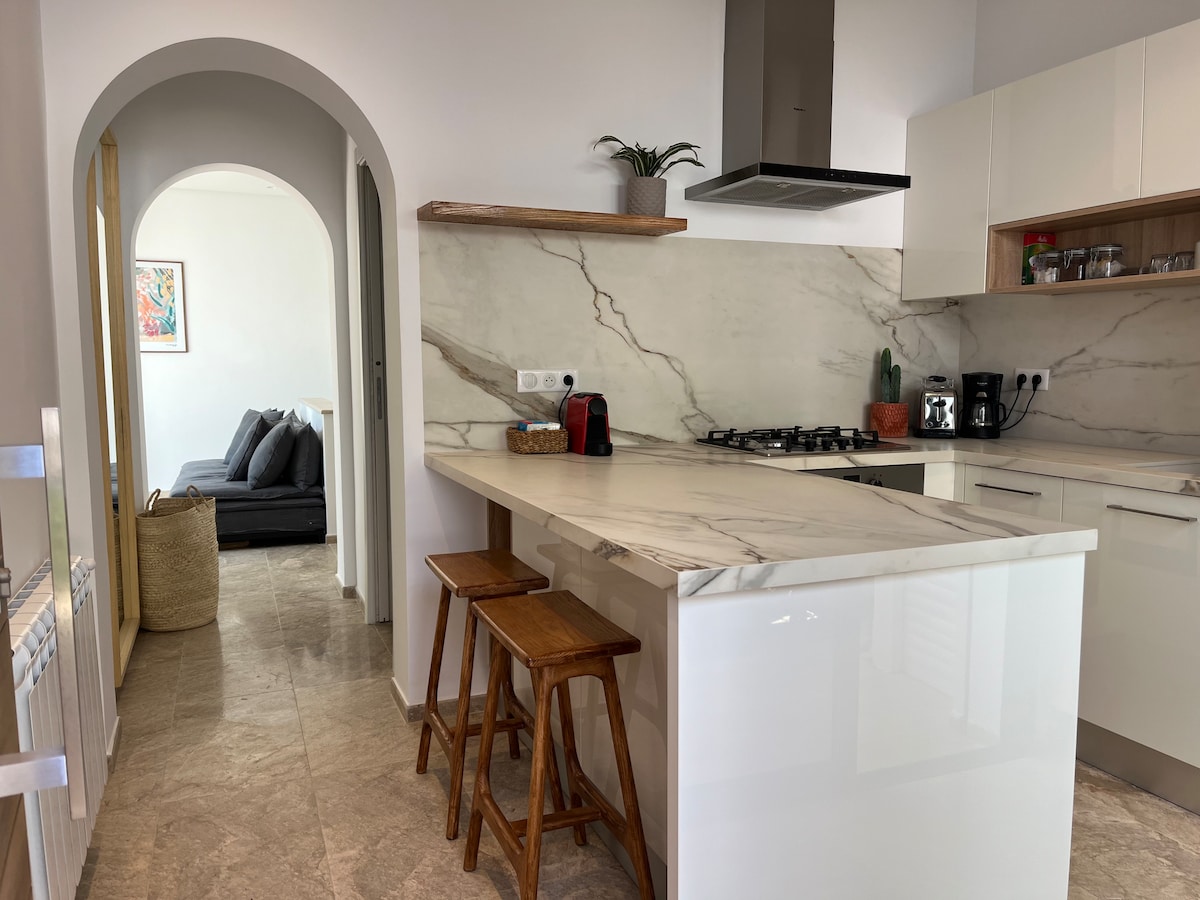 Dobro došli u naš šarmantni stan u prizemlju, koji miješa mediteranski dekor i savremeni stil, savršeno smješten i vrlo lako dostupan, okružen kafićima, restoranima i prodavnicama, 30 sekundi hoda od tržnog centra Tunisia. Idealno dizajniran za 2 para, ali može da ugosti do 6 osoba sa svojim modularnim prostorom za opuštanje. Pažljiva arhitektura, bogata sadržajima, sa terasom od 52 m², sve je osmišljeno da se osjećate kao kod kuće:)
