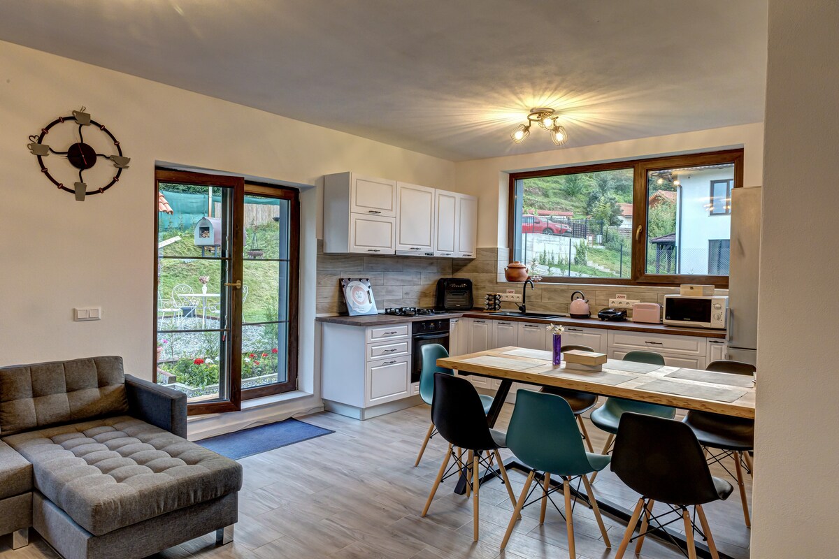 RO: "Casa Liniștită” este o casă de vacanță cu două niveluri, complet echipată și utilată, care se închiriază „la cheie”. Vă oferim oportunitatea de a petrece câteva zile în natură și liniște la doar 14 km de Cluj-Napoca. ENG: A holiday cabin with two levels, fully equipped. We offer you the opportunity to spend a few days in nature and peace just 14 km from Cluj-Napoca.