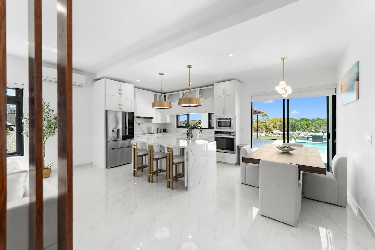 - Enjoy panoramic views and unwind by the private pool with comfortable loungers - Spacious layout with multiple patios and balconies for an indoor/outdoor experience - Fully equipped kitchen and BBQ area – perfect for cooking and dining in style - Located 5 minutes from Grace Bay, with shopping, dining, and the beach just minutes away - Book now and make unforgettable memories in this stylish, tranquil villa!