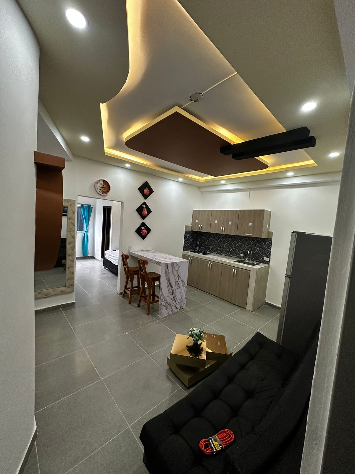 Espectacular apartamento con acabados de calidad y mobiliario moderno, amplia zona social, cocina totalmente equipada y dos confortables habitaciones con baño, WiFi de alta velocidad y smart tv de 55" y aire acondicionado en todas las áreas te brindarán tranquilidad y confort durante tu estancia en Quibdó. Ubicado en el corazón de la ciudad, zona segura y a cinco minutos de supermercados, restaurantes y gimnasios, nuestro alojamiento te ofrece un equilibrio perfecto entre comodidad y estilo.