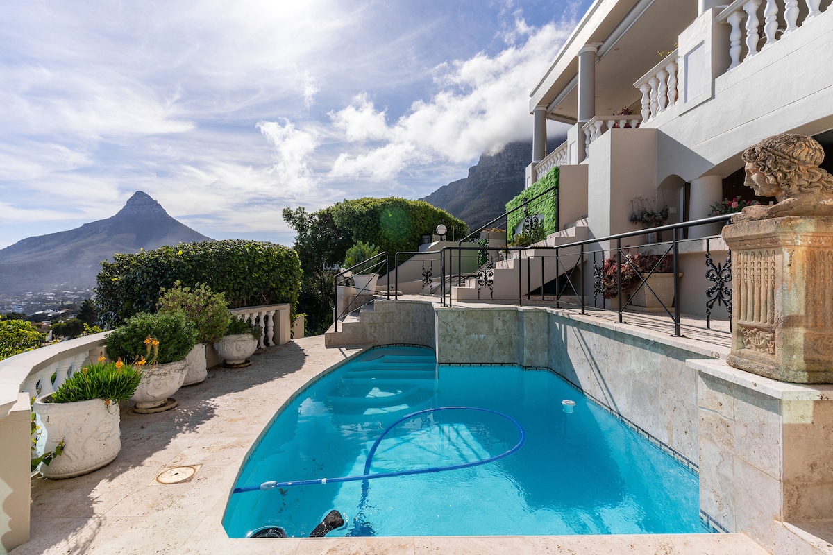 Opustite se na ležaljkama pored bazena nakon napornog dana i uživajte u pogledu na Stolnu planinu. Ovaj prostrani moderni studio gleda na vašu ekskluzivnu upotrebu luksuznog privatnog bazena. Otiđite u jutarnju šetnju plažom, udaljenom samo 100 metara. Koristite radni sto u zatvorenom ili veliki sto pored bazena na natkrivenoj terasi da biste radili na daljinu sa našim brzim fiberima. Garsonjera ima rezervno osvetljenje, klima-uređaj, Netflix i sopstveni ograđeni parking.