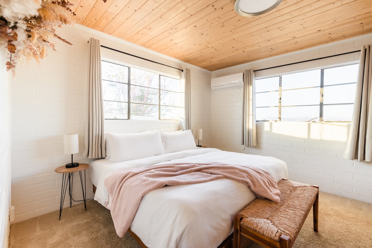 Doživite pustinju neopterećenu ogradom u WKNDR Parksideu - jednom od najbližih domova na ulazu u Nacionalni park Džošua Tri. Uživajte u izlasku i zalasku sunca iz naše privatne hidromasažne kade, zapalite vatru noću i uživajte u filmovima pod zvezdama. Nakon cjelodnevnog istraživanja parka (u koji možete da uđete iz kuće), rashladite se u našem spoljašnjem tušu. Samo 5 minuta od centra grada 29 Palms, bićete blizu svega što vam je potrebno dok uživate u miru svoje pustinjske oaze.