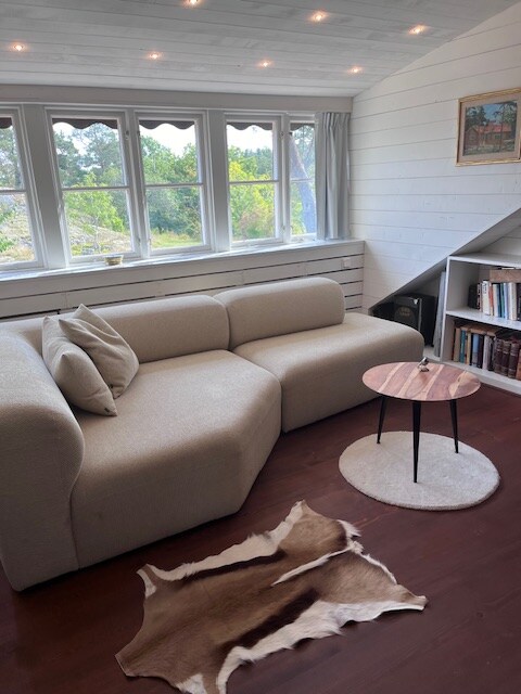 Oni koji vole prirodu i „jednostavan“ i rustikalan stil! Izgrađen 1927. godine, u vlasništvu četvrte generacije. Sopstvena plaža, pristanište za brod/ribolov/plivanje, delimično divlja parcela sa šumom i bobicama! (oko 60x60m). Mirna zelena površina Norrna u blizini Rindöa i Vaxholma. Pogled na brodove koji prolaze Dno+potkrovlje= 65 m2, za 5 osoba (+4 kreveta za goste - 200 sek/osoba po noćenju), terasa - 30 m2. Samo 40 km od Stokholma Central (autobus 3-4 puta dnevno u oba smera). Farma konja 4 km. Homeost Centrum 10 min. automobilom