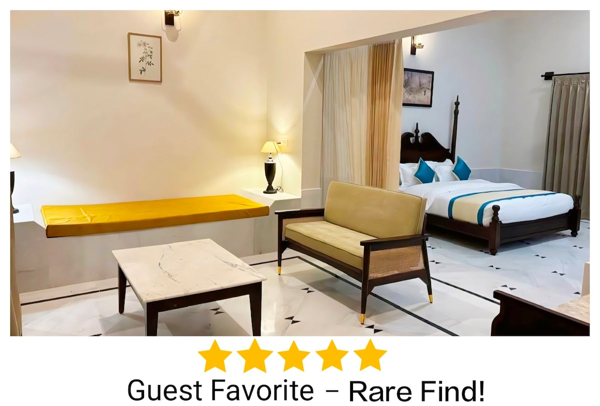 Ovaj Airbnb koji se nalazi u centru grada nudi zadivljujući pogled na zalazak sunca i jezero direktno iz vaše sobe. Uz velike prozore uživaćete u zlatnim zalascima sunca koji svjetlucaju iznad mirnog jezera. Udoban prostor kombinuje radžastanski dekor sa modernom udobnošću, što ga čini savršenim mjestom za opuštanje nakon što istražite obližnje atrakcije Udaipura kao što su Gradska palata i lokalne pijace.