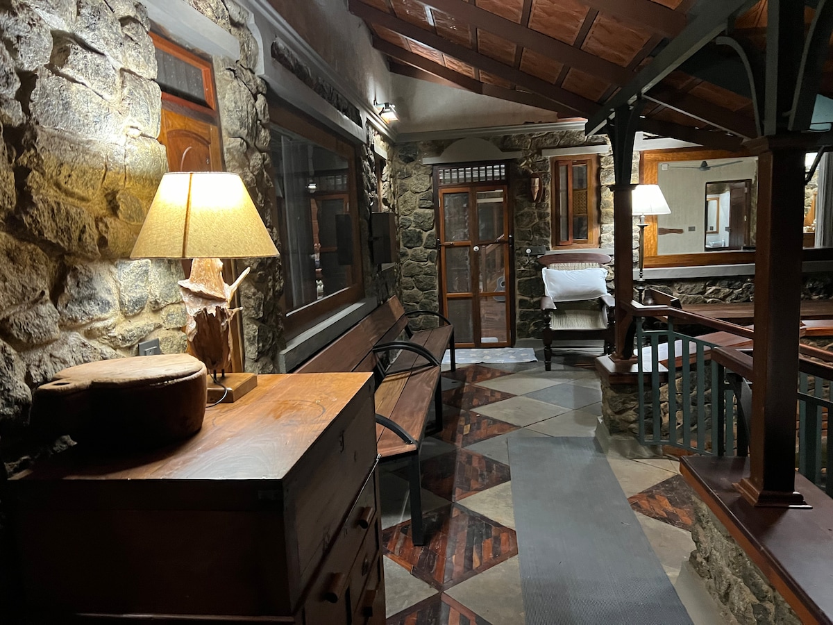A restored stone cottage at 3,300 ft in Vagamon, Kerala. Off-grid eco retreat on five acres of forest — solar and wind powered, farm-to-table meals by Chef Anoop, no television, and real quiet. The cottage was once a labour shed on a working estate. Original stone walls, comfortable interiors, a verandah overlooking the valley. Not a resort. No pool, no spa. What there is: hornbill song at dawn, bonfires under the Milky Way, and the feeling of being completely off the map.
