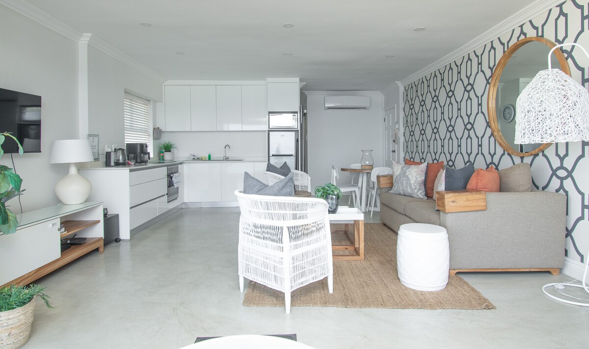 Luxury 1 Bedroom 1 bathroom Self Catering Apartment right on the Beach with stunning views, located on Lagoon Drive. 1 parking u luci za automobile, 2 sprata stepenica vode vas do zadivljujućeg pogleda sa broja 24. Dnevni boravak ima klima-uređaj Bračni krevet (širine 180-220 cm). Kupatilo sa tuš-kabinom. Sjedite na balkonu ispod plaže i uživajte u pogledu dok uživate u braaiju. Wi-Fi. DSTV/Netflix koristite svoje podatke za prijavu.