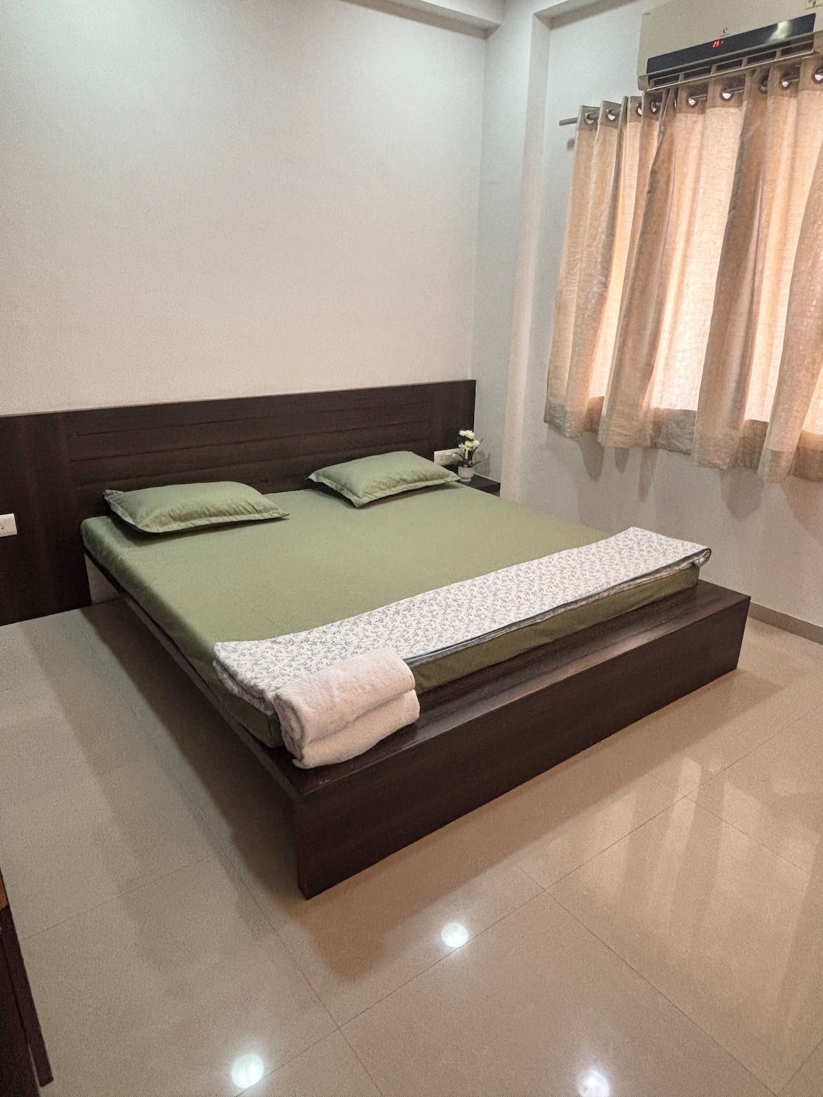 Topao i prijatan boravak u ovom prostranom stanu u centru grada 2BHK. Objekat se nalazi oko 15 minuta od aerodroma Baroda i 5 minuta do željezničke stanice. Ovo je klimatizovan smještaj okružen popularnom destinacijom za kupovinu, restoranima, prodavnicom, bolnicom. Povezani toaleti, dnevni boravak s udobnim namještajem i trpezarijom. Potpuno opremljena kuhinja. Wi-Fi konekcija. Uz posebne sadržaje, garantujemo prijatno iskustvo i jednostavan boravak kod nas.