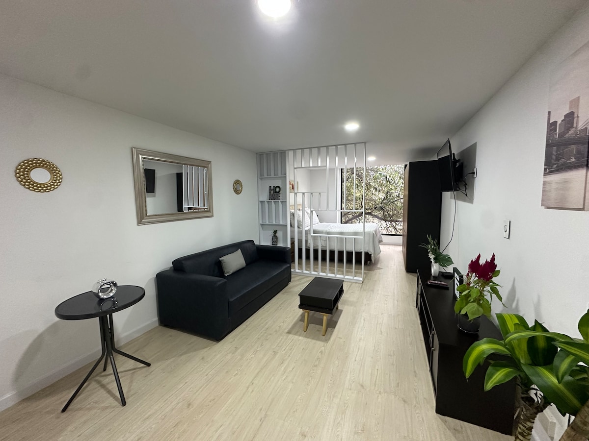 Uživajte u jednoj od najboljih lokacija koje Bogota može da ponudi. Veliki bračni krevet. Apartman od 20 Mts2 sa kompletnom kuhinjom i privatnim kupatilom. Brzi Wi-Fi sa Smart TV-om i Netflix-om. Coworking área in the Building. Teretana na gornjem spratu. (besplatno) Prostor za pranje veša ( plaćanje po upotrebi) Džakuzi (plaćanje po upotrebi) Soba za jogu (besplatno) Bezbjednost non-stop u predvorju. Parking área. Do lijepih restorana i pijaca možete doći pešice.