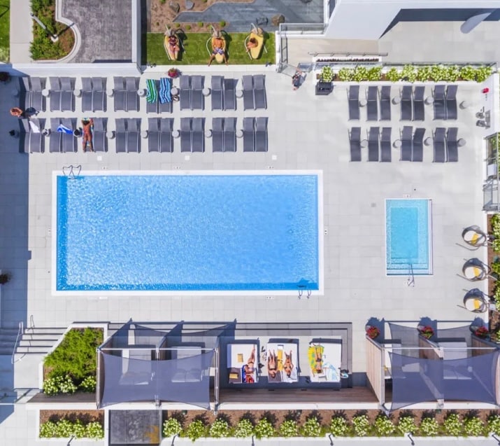 Apartman sa dvije spavaće sobe i dva kupatila, sa bračnim krevetom (širine 180–220 cm), bračnim krevetom (širine 150–179 cm) i kaučem na razvlačenje. Najveći broj gostiju je 4. Uživajte u pristupu sadržajima za život bez premca na više od 32.000 kvadratnih stopa, uključujući sezonski otvoreni bazen, opuštajuću hidromasažnu kadu i najsavremeniji fitnes centar. Uživajte u predivnom pogledu na horizont Čikaga iz našeg Cloud Lounge-a, roštiljajte obroke na stanicama za roštilj i uživajte u filmskim ili igračkim večerima u medijskoj sobi.