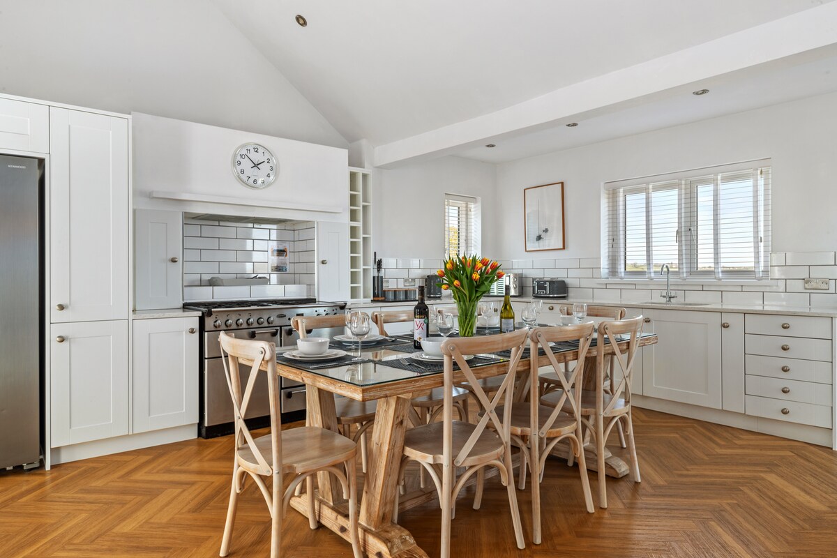 Longleigh is the ideal beach house perfectly situated in Croyde and just a 5 minute walk from the beach and the village centre. With sea views over the dunes, the house is surrounded by fields. Longleigh has 6 large en-suite bedrooms, a large open plan kitchen, spacious sitting room, a penthouse lounge with a further double bed, a ‘wet’ room/utility room, spacious patio, enclosed garden and a large roof deck which wraps around the whole house.