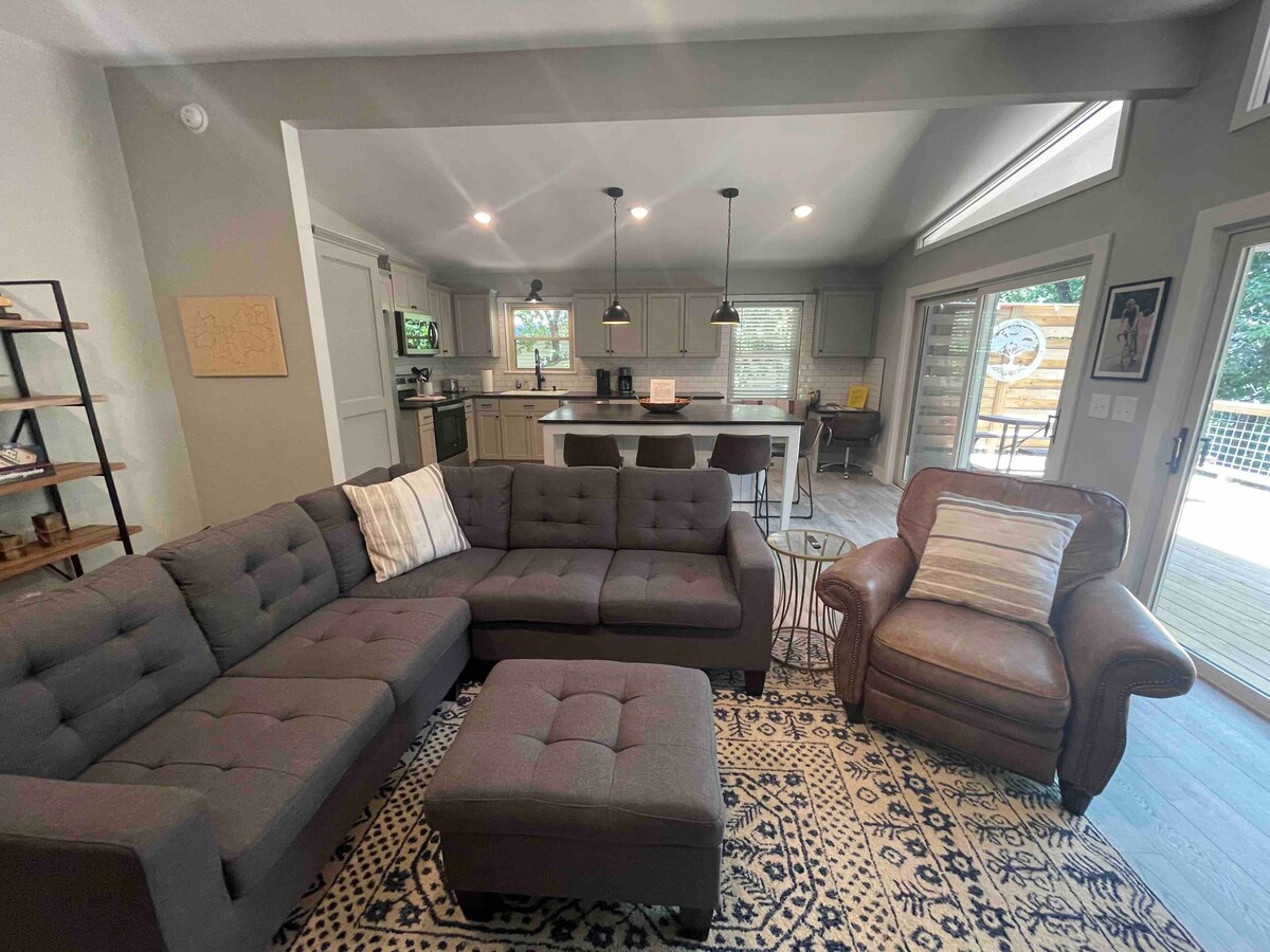 The Treehouse Bungalow was personally renovated and designed by your hosts, Steve and M over the last year. All of the spaces are brand new and exude comfort & peace. From the cozy living room with electric fire place to the spacious deck facing the woods. You will find several, separate areas to make your own. We encourage you to take a break in the soaker tub or grab a book and lounge in the king size bed master. The bike trails, golf, and lakes all around. Come visit NWA and be our guest!